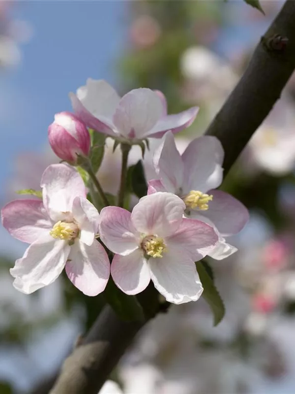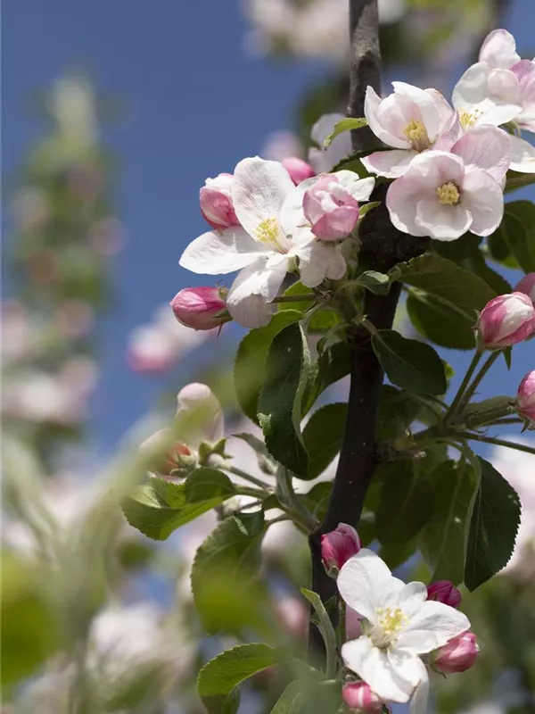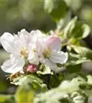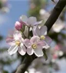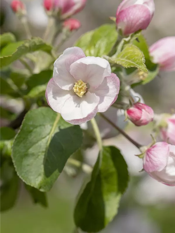 Malus domestica 'Landsberger Renette' bildet hellrosafarbene Blüten ab April.