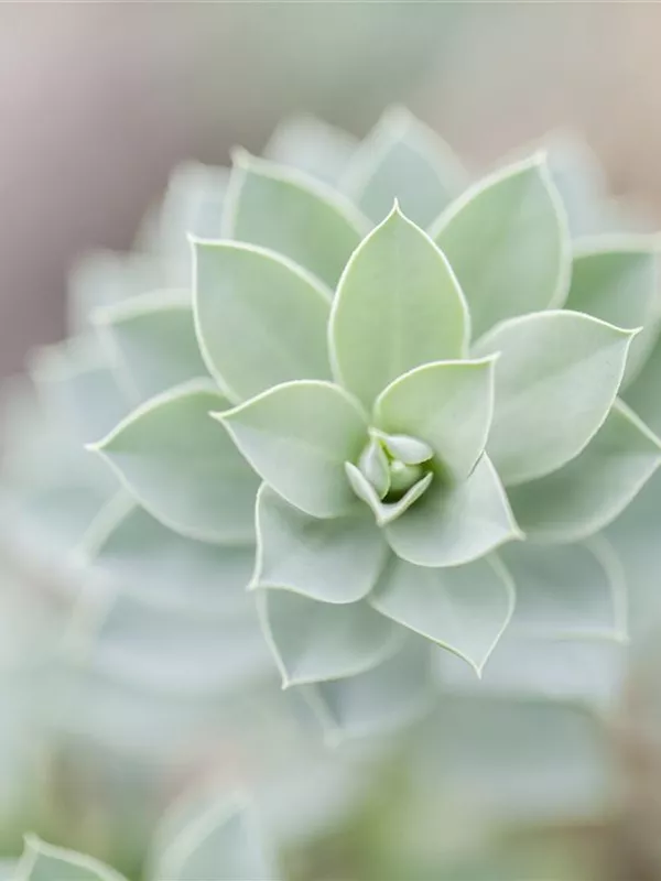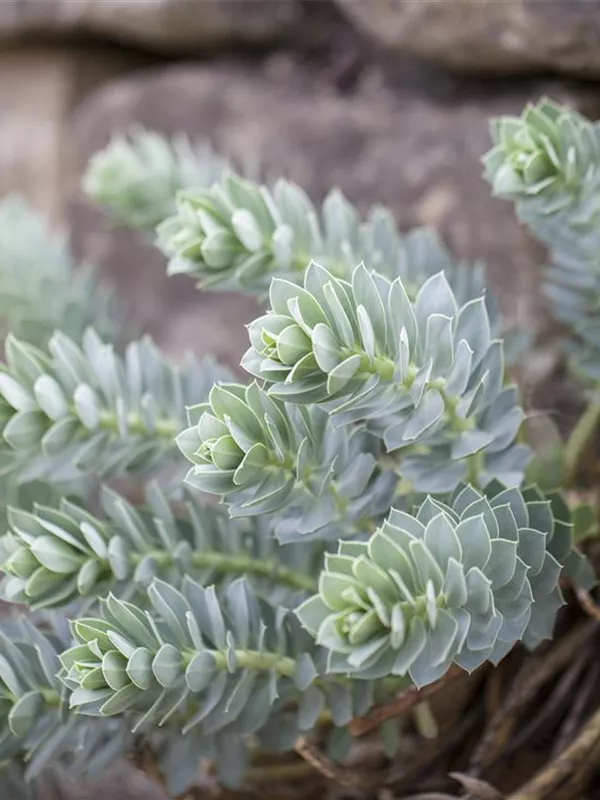 Die wintergrünen Blätter der Walzen-Wolfsmilch sind blau-grün, eiförmig, dickfleischig.