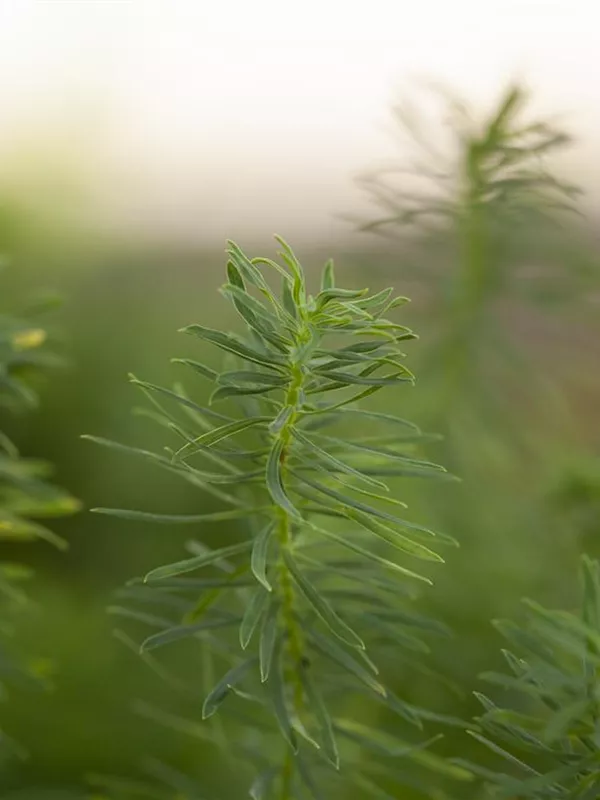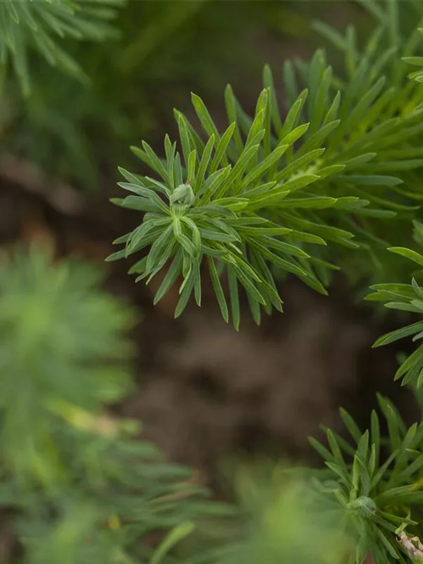 Die sommergrünen Blätter der Zypressen-Wolfsmilch sind mittelgrün, nadelförmig.