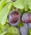 Die dunkelblauen Steinfrüchte haben einen süßen, aromatischen Geschmack. Reifezeit ab September.