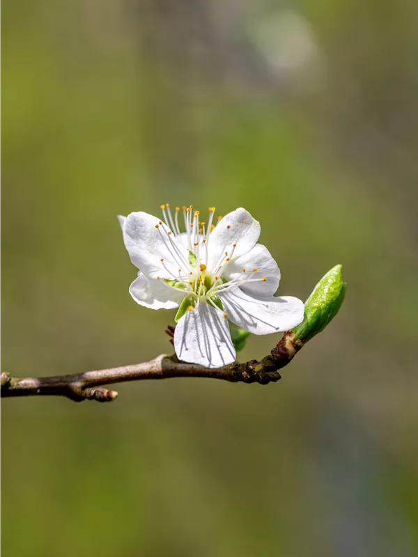 Prunus domestica subsp. domestica 'Wangenheims Frühzwetschge' bildet weiße Blüten ab April.