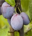 Die dunkelblauen, großen Früchte haben einen süß-säuerlichen Geschmack. Das lila-gelbe Fruchtfleisch ist fest. Reifezeit ab September.