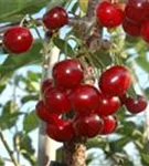 Prunus cerasus 'Morina'(s) bildet rot-braune Früchte.