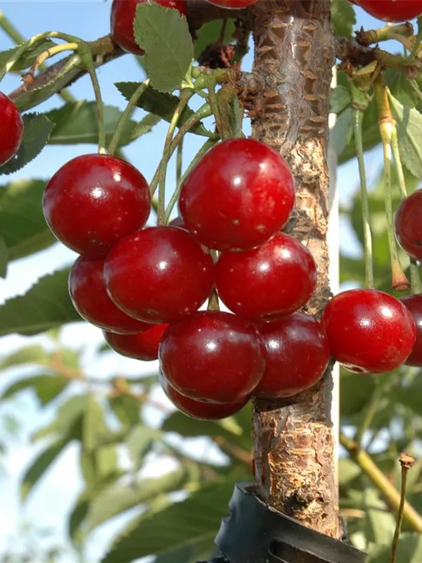 Sauerkirsche 'Morina'(s) ist ein aufrecht wachsender Kleinbaum, der eine Höhe von 2,5 - 4,5 m und eine Breite von 2,5 - 3,5 m erreichen kann. In der Regel wächst sie 20 - 40 cm pro Jahr.