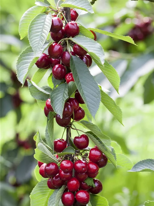 Süßkirsche ist ein eiförmig wachsender Baum, der eine Höhe von 15 - 20 m und eine Breite von 10 - 15 m erreichen kann. In der Regel wächst sie 15 - 20 cm pro Jahr.