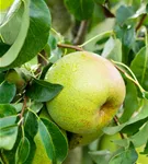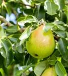 Pyrus communis 'Vereins Dechantsbirne' bildet gelb-grüne Früchte.