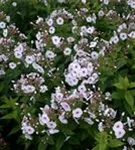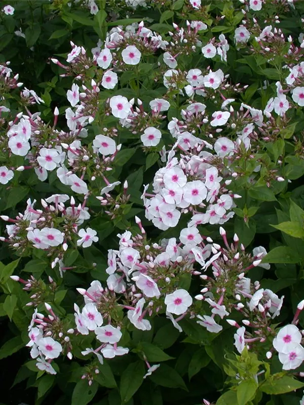 Phlox paniculata 'Graf Zeppelin' bildet in Dolden angeordnete, weiß-rote Blüten ab Juli. Diese verströmen einen leichten Duft.