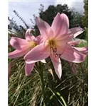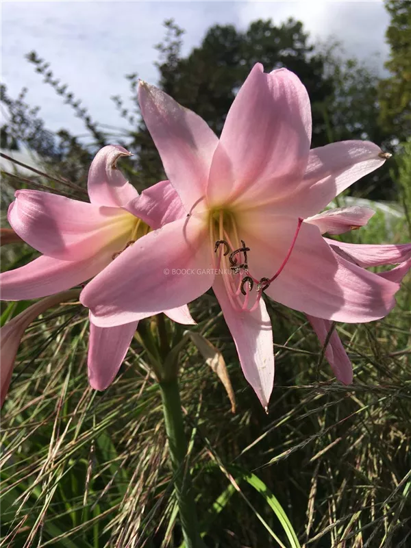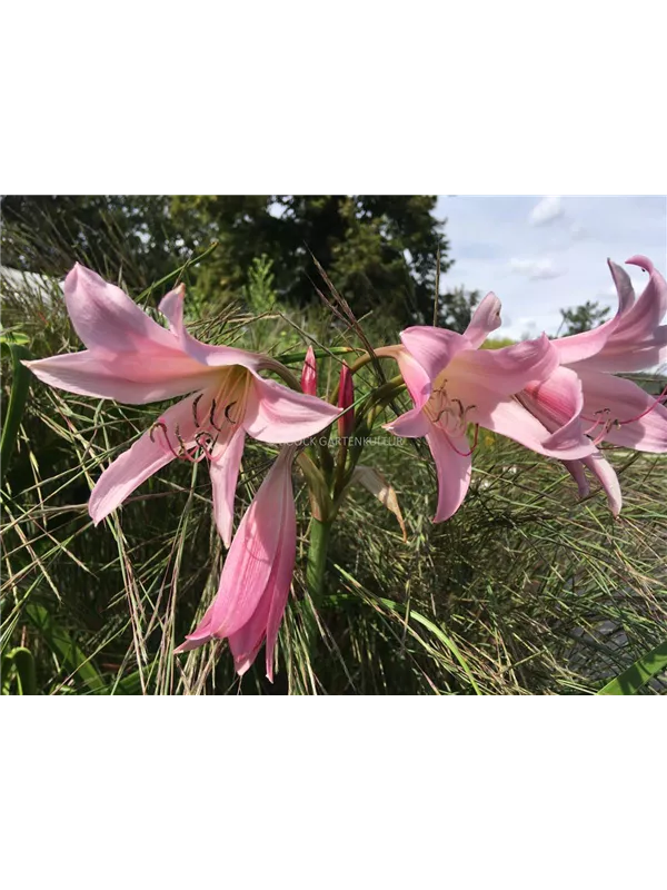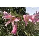 Die rosafarbenen, trichterförmigen Blüten erscheinen von Juni bis Oktober.