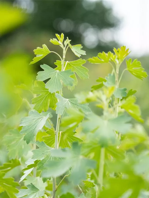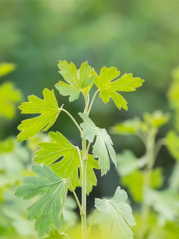 Die sommergrünen Blätter der Gold-Johannisbeere sind hellgrün, rundlich, wechselständig, gelappt. Gold-Johannisbeere zeigt sich leuchtend purpurrot im Herbst.