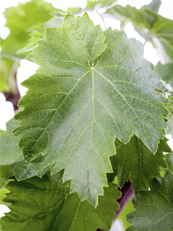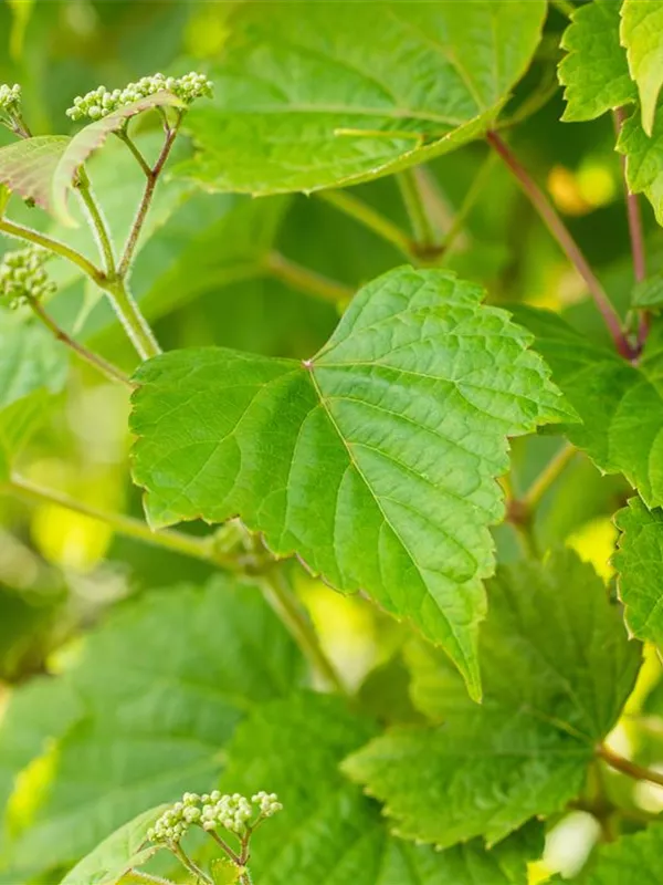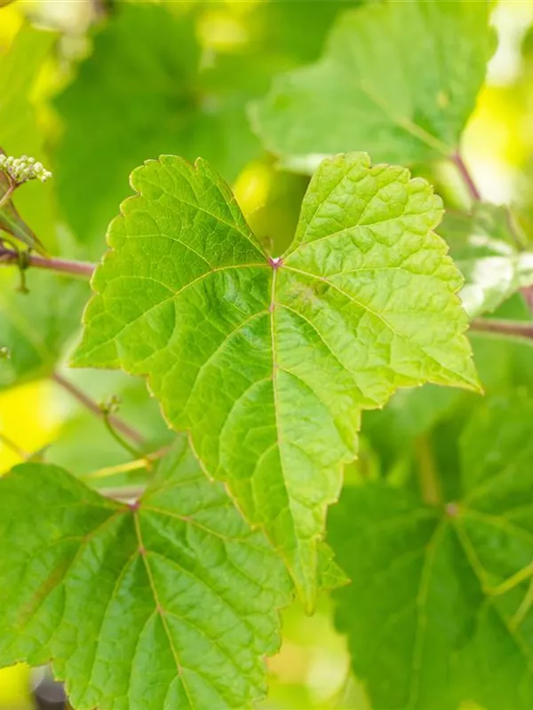 Die sommergrünen Blätter des Uferweins sind mittelgrün, herzförmig.