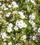 Fingerstrauch 'Eisprinzessin' ist ein buschig und breit wachsender Kleinstrauch. Er erreicht gewöhnlich eine Höhe von 40 - 60 cm und wird ca. 60 - 80 cm breit. In der Regel wächst er 5 - 15 cm pro Jahr.