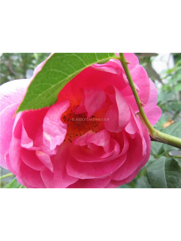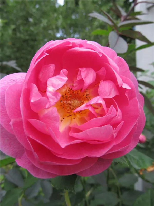 Die pinken, schalenförmigen Blüten sind starkgefüllt und erscheinen von Juni bis Oktober. Diese werden etwa 8 - 10 cm groß und sind angenehm duftend.