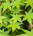 Die sommergrünen Blätter des Rotaustreibender Fächerahorns 'Deshojo' sind hellgrün, geschnitten, gegenständig, gelappt. Diese sind etwa 5 - 6 cm groß. Leuchtend roter, früher Austrieb. Rotaustreibender Fächerahorn 'Deshojo' zeigt sich leuchtend karminrot im Herbst.