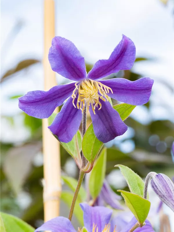 Die sommergrünen Blätter der Krautige Garten-Waldrebe 'Juuli' sind mittelgrün, lanzettlich.