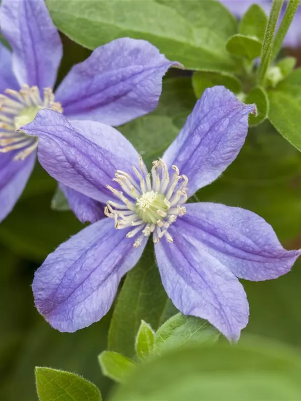 Die sommergrünen Blätter der Waldrebe 'Arabella' sind mittelgrün.