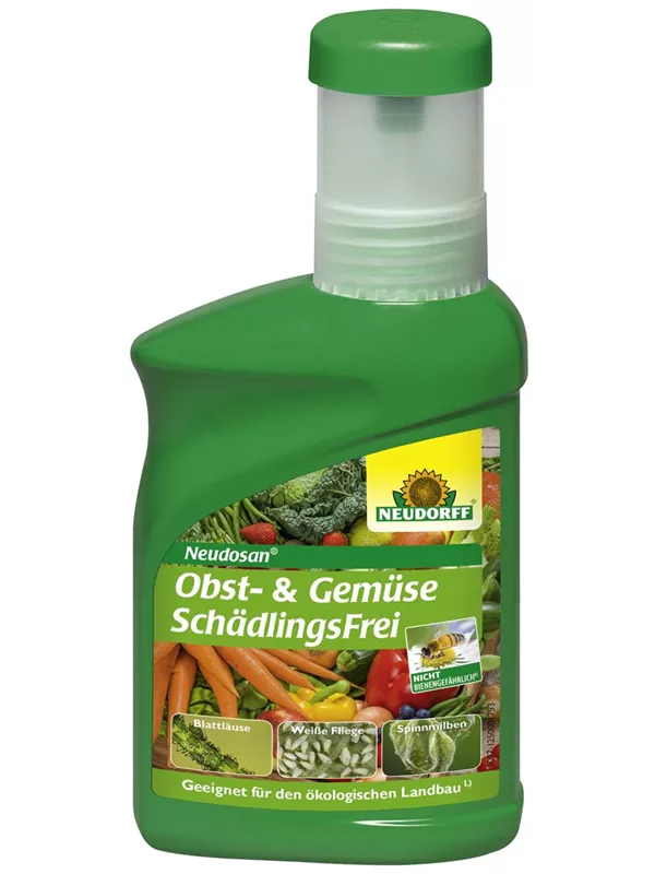 Konzentrat mit Wirkstoff natürlichen Ursprungs zur gezielten Bekämpfung von saugenden Insekten und Spinnmilben an Obst und Gemüse. Wirkt unter anderem gegen Blattläuse, Blattsauger, Weiße Fliege, Spinnmilben und Sitka-Fichtenläuse. Nützlingsschonend und nicht bienengefährlich (NB 6641). Geeignet für den ökologischen Landbau gemäß der Verordnung (EG) Nr. 834/2007. Keine Wartezeit bis zur Ernte.