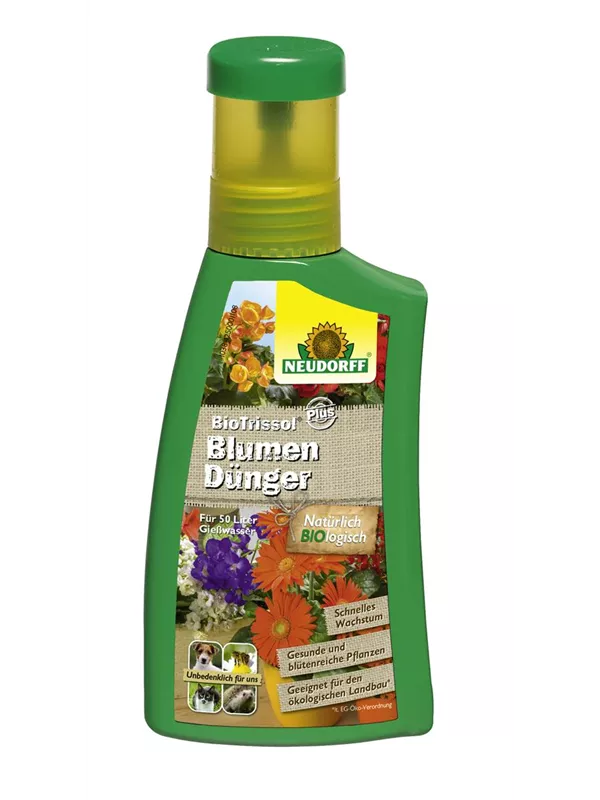 Organischer NPK-Dünger 4-1,5-4, flüssig unter Verwendung von pflanzlichen Stoffen und tierischen Nebenprodukten. Die BIOlogische Vollwertkost für Zimmerpflanzen. Das PLUS an BIOlogischen Stoffen sorgt für beeindruckenden Blüten, beschleunigtes Pflanzenwachstum und erhöhte Widerstandskraft gegen Krankheiten und Schädlinge.